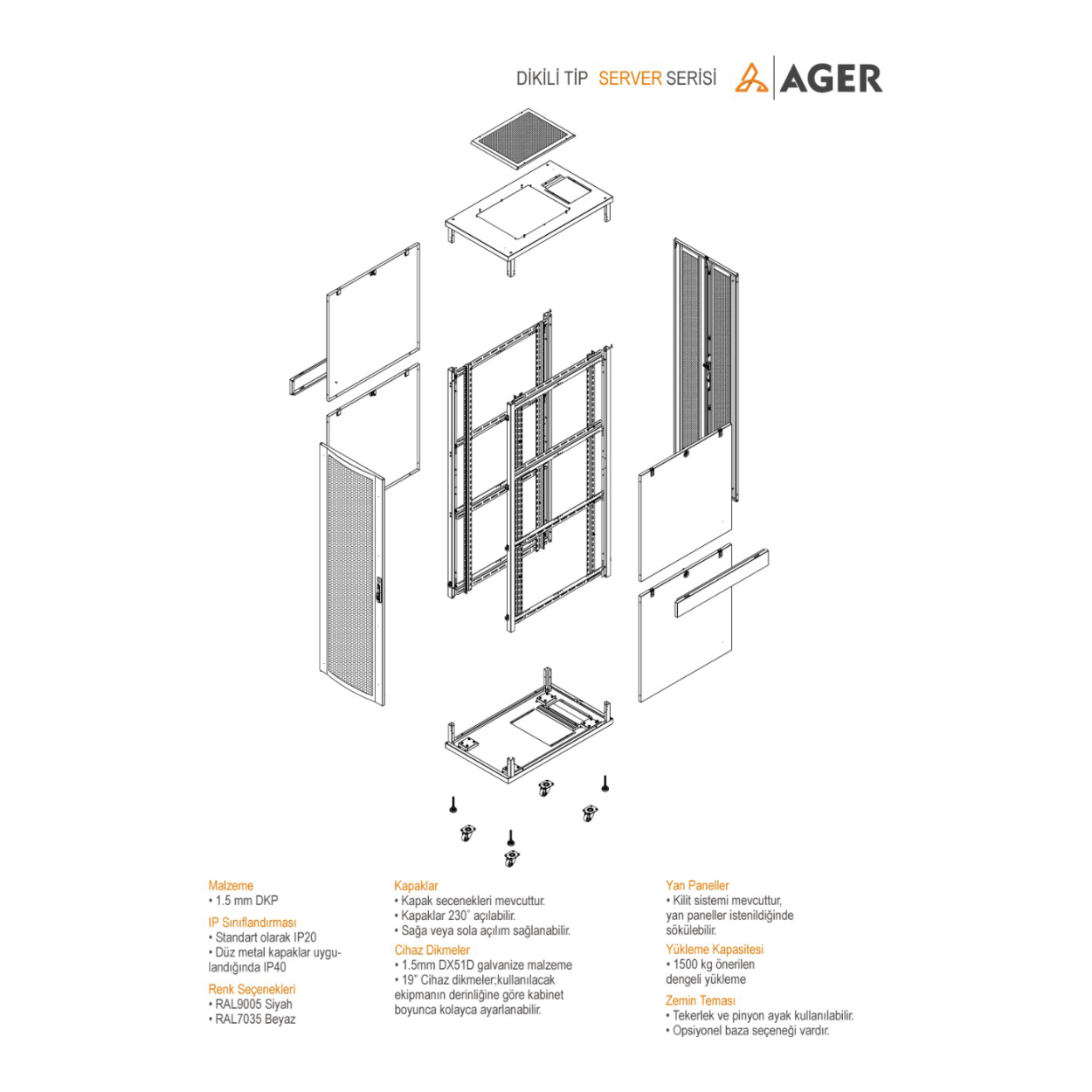 AGER Server Serisi 36U W=600mm D=1000mm 19'' Dikili Tip Kabinet