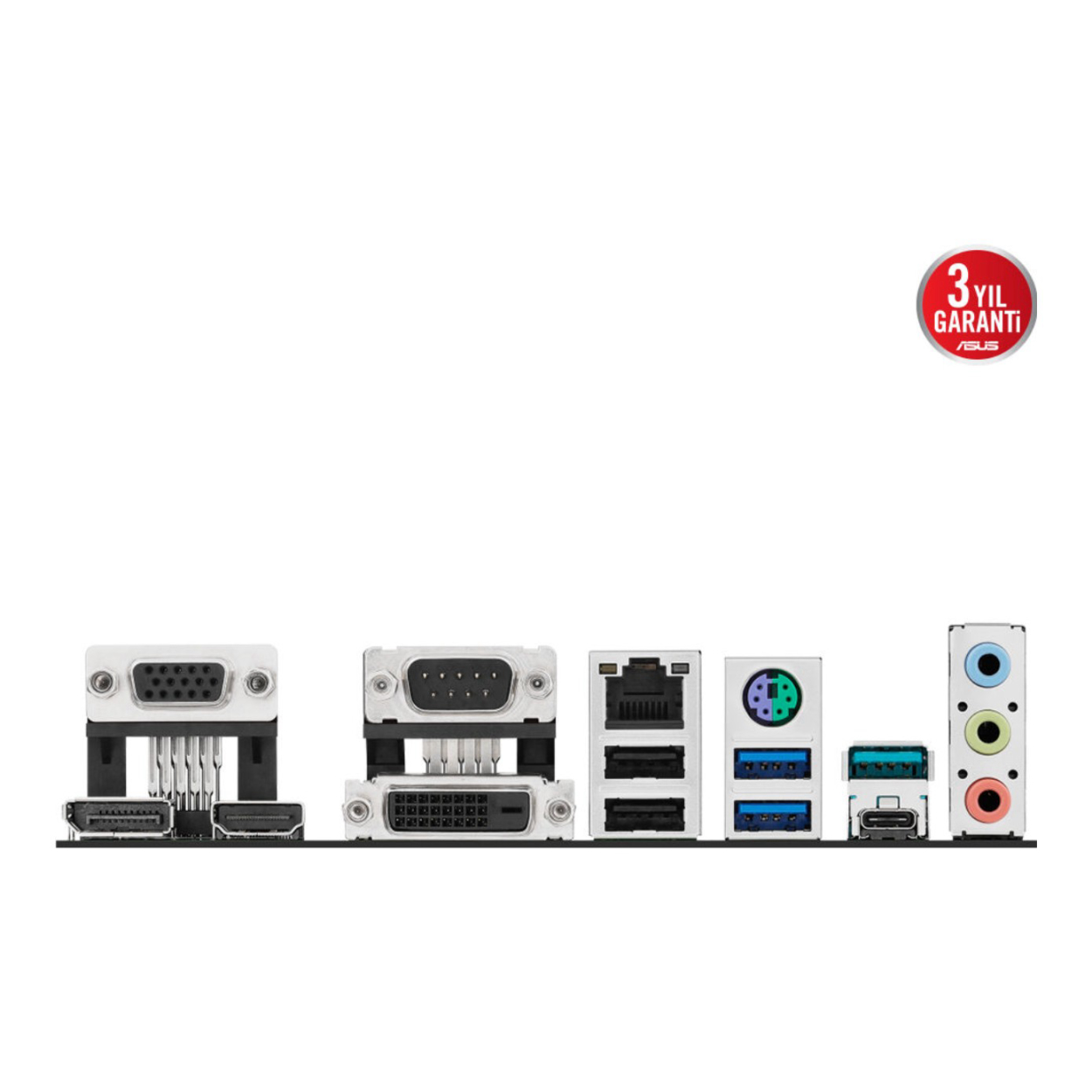 Arka Panel G/Ç Bağlantı Noktaları 1x USB 3.2 Gen2 1x USB-C 3.2 Gen2 2x USB 3.2 Gen1 2x USB 2.0 1x DisplayPort 1x VGA 1x DVI-D 1x HDMI 1x Ethernet (Intel 1 Gb) 3x Ses Jakı 1x COM Bağlantı Noktası 1x PS/2 Klavye/Fare Kombinasyonu |